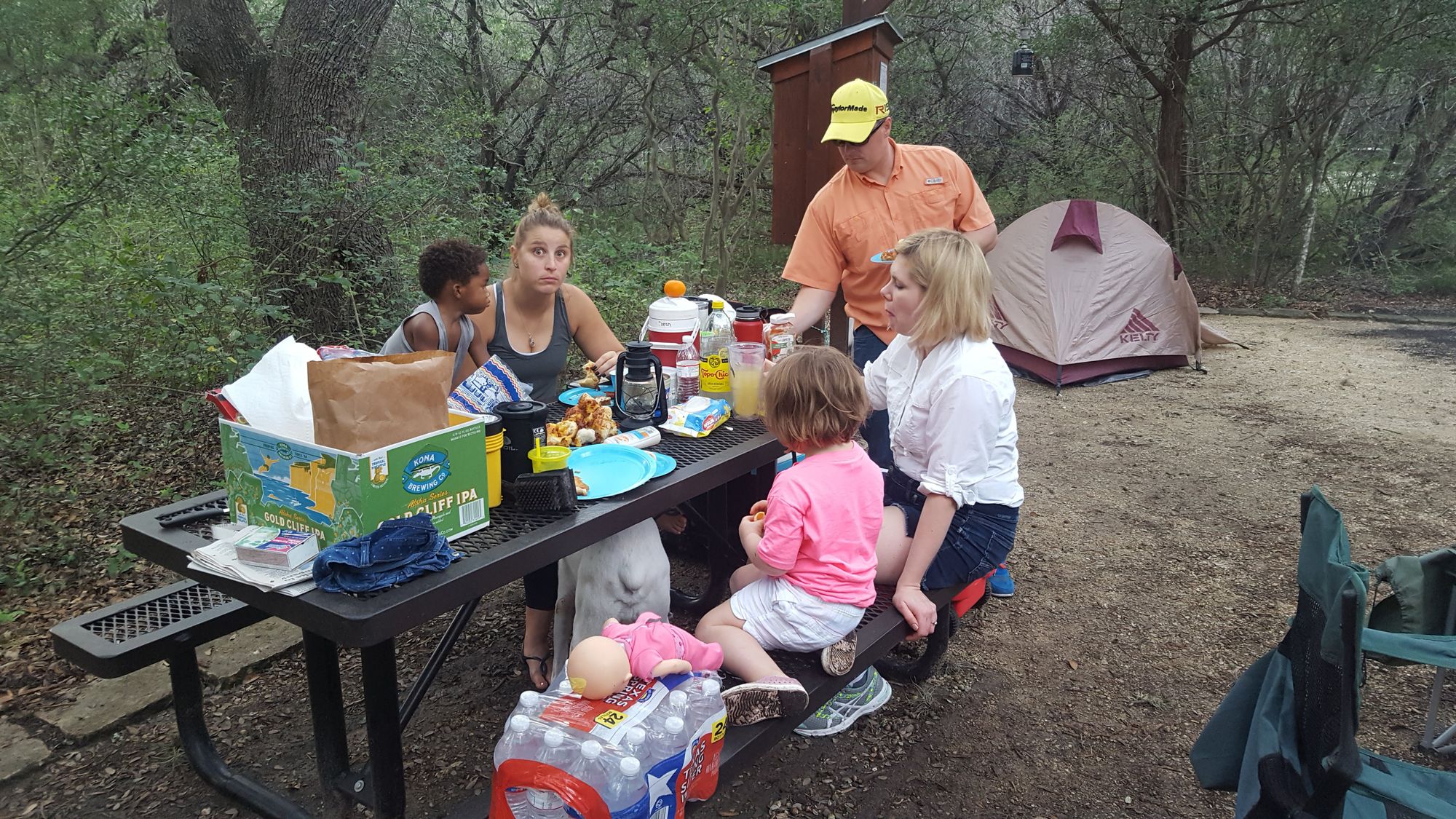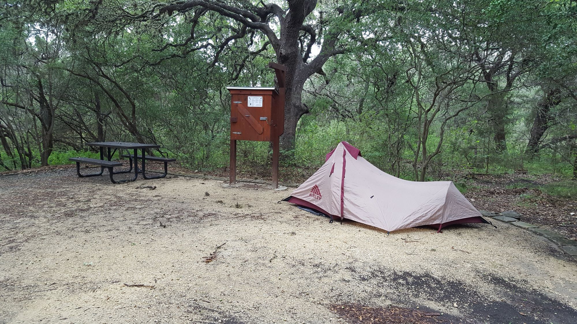 Went to the campsite to pick the best spot available and got lucky with a spot right next to water and the restroom but far enough into the woods to be secluded. We did get a little rain throughout the day but nothing that was going to ruin our plans.