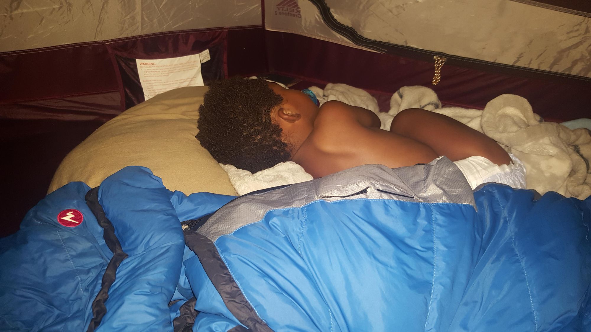 This is the part I was most worried about with a 1-year-old, but he did great. He woke up at his normal time for a bottle and was otherwise quiet most of the night. Due to his fever, I could tell he was not super comfortable, especially in the humidity, but he still wanted to snuggle. At one point, he sat up looking out of the tent for about an hour but was totally quiet the whole time. Having his diaper bag handy and ready to go in the tent made the night simple as I did not even have to leave the tent at all.