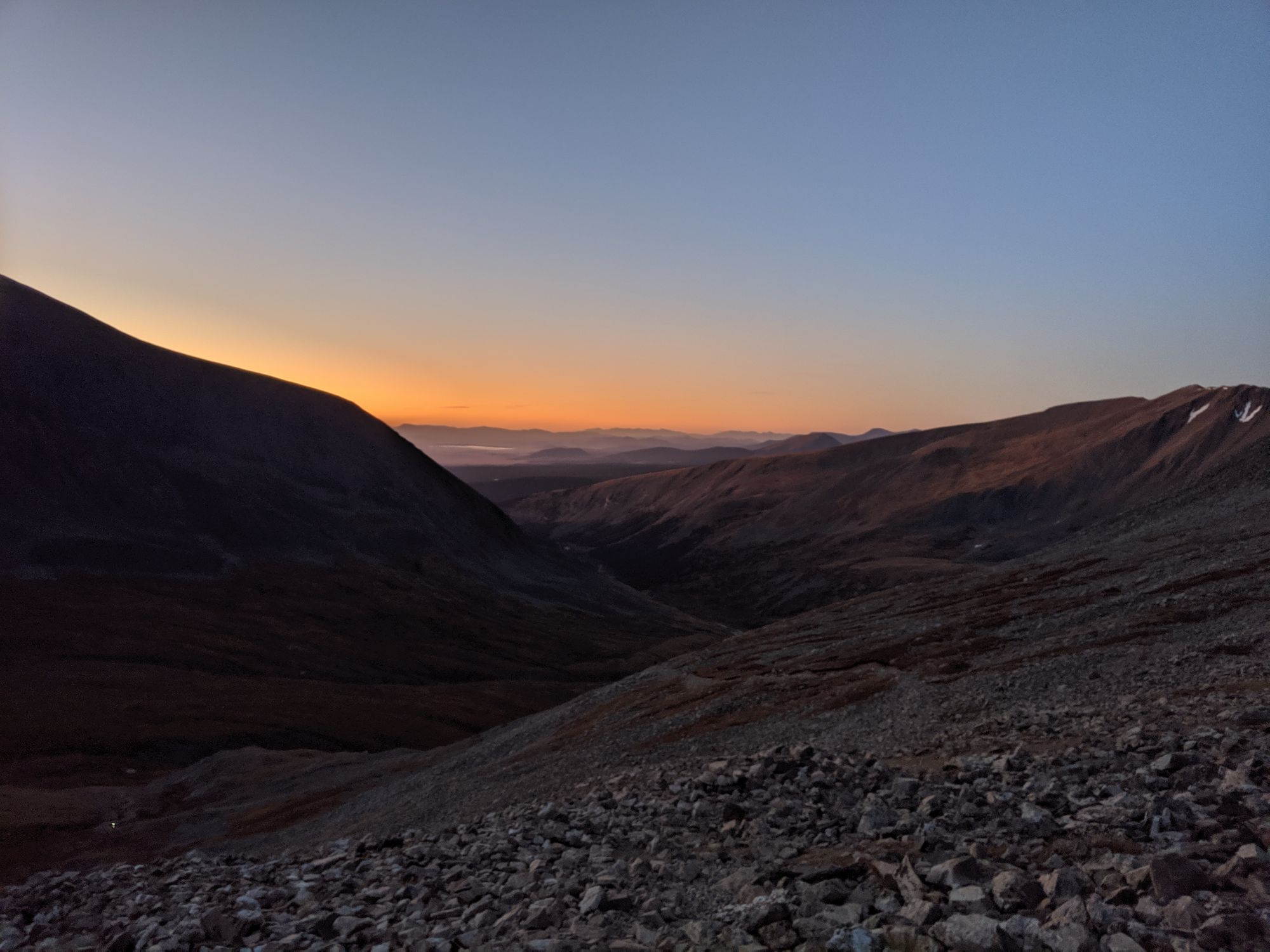 I woke up at 3 Am again and drove to the trailhead. I arrived right at 0500 and was hiking by 0510; I could already see headlamps up on the saddle. Other than some elevated burning of my quads, I felt pretty good considering the hike from the day before. I continued to stop every hour for some water and a snack.