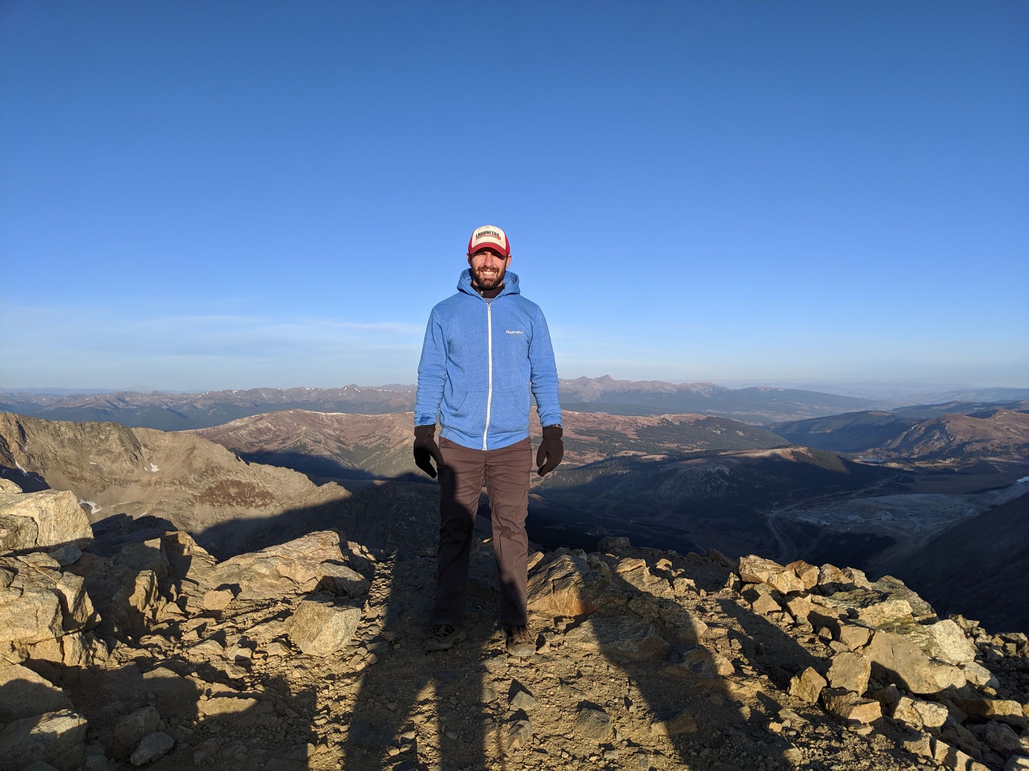 I summited Torreys at 0830, about 3 hours and fifteen minutes after I had started my hike. The Torreys summit may be my favorite summit to date. It was small and I was the only one there initially. I had the whole place to myself. Also having completed my fifth fourteener in two days felt like quite an accomplishment. I cracked open my summit beer (another first) just as another hiker gained the summit.