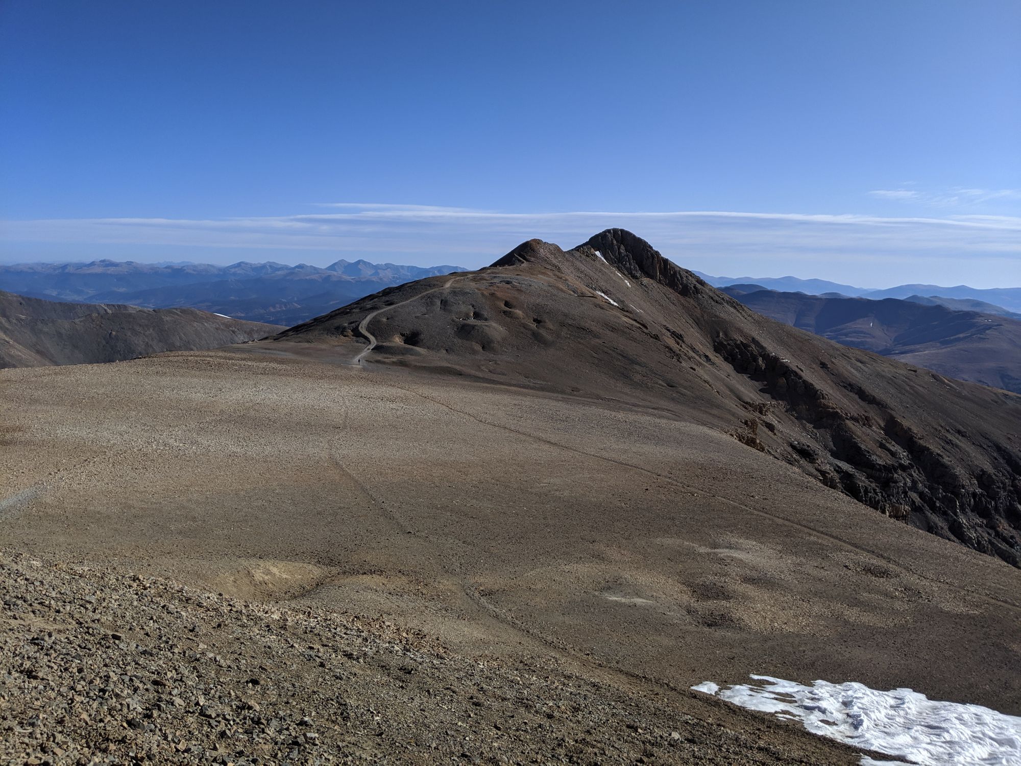 Leaving the Lincoln summit, I followed what I thought were the obvious trails over to Bross. Bross is on private property and the summit is closed. Hikers are supposed to bypass the summit. I knew this and I still ended up on the wrong trail that took me right to the summit. I didn't really realize I was on the wrong trail until I crested the summit ridge and realized my mistake.
