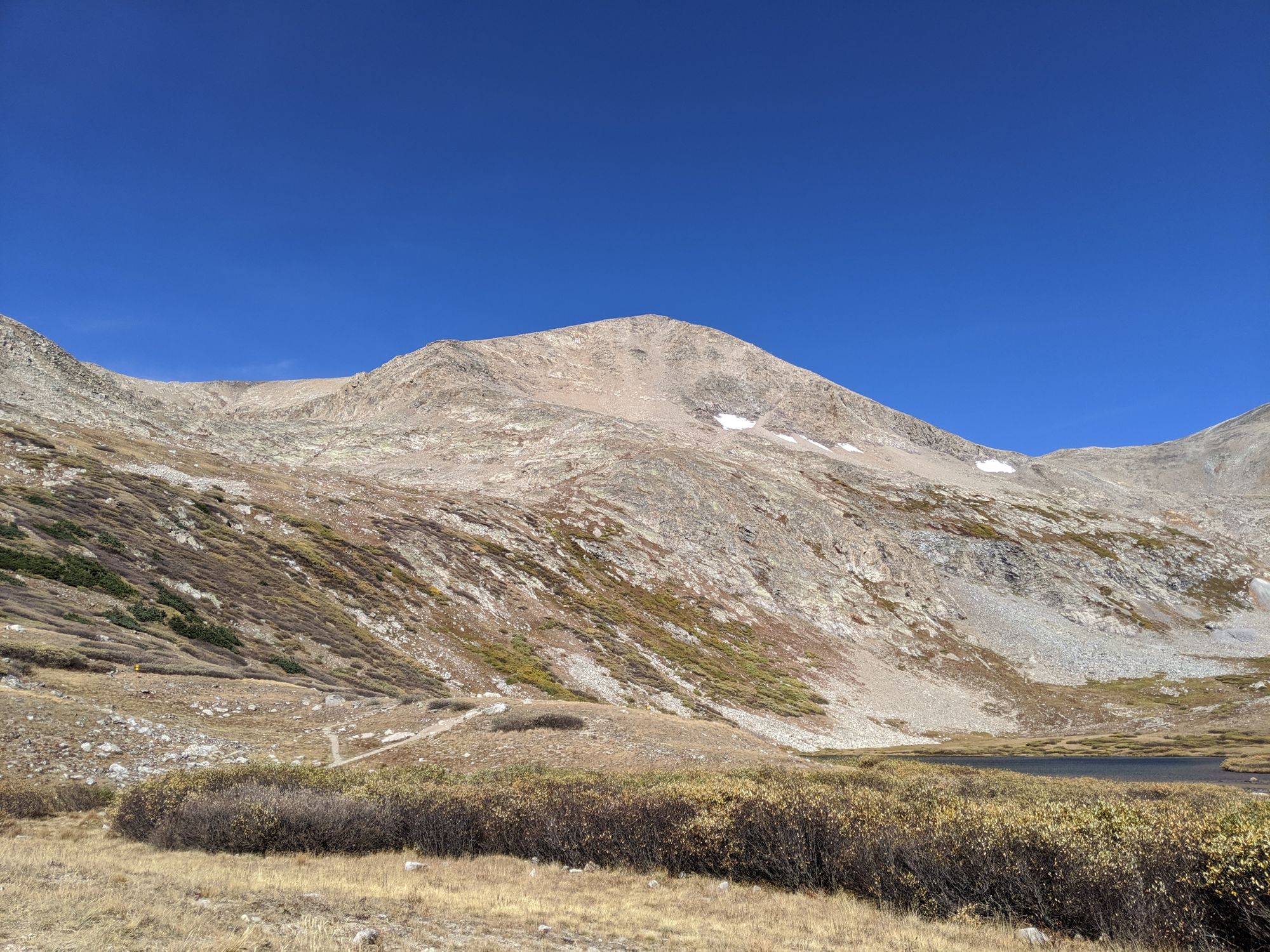 The temperature on the lower part of the hike was much warmer than the previous day and I felt overdressed. However, once I crested the Grays/Torreys saddle, the wind really kicked up and I was adding layers.