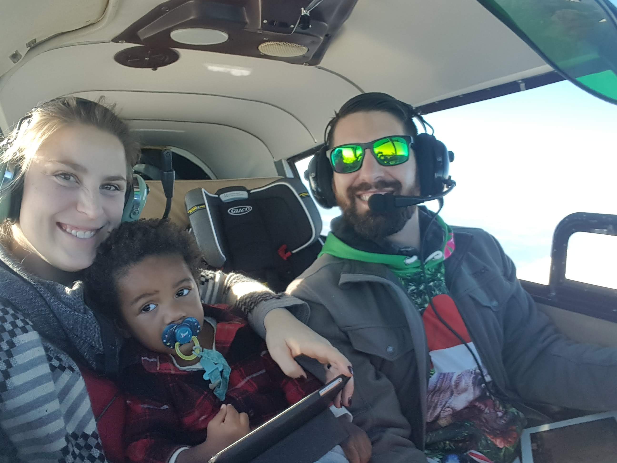 I generally prefer to fly the Flight School's Cessna 172, but after a recent flight in a 160HP Pip Cherokee with my instructor, we found out that the Cherokee is actually a few MPH faster than the Cessna so we elected to make the flight in that. I was a little worried that the baby carseat would not fit well in the back seat as this would be the little man's first flight out of his infant carrier. The back seat of the Cherokee is actually pretty spacious and the seat fit fine.