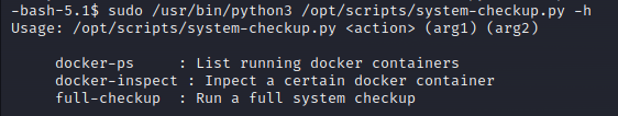 (root) /usr/bin/python3 /opt/scripts/system-checkup.py *