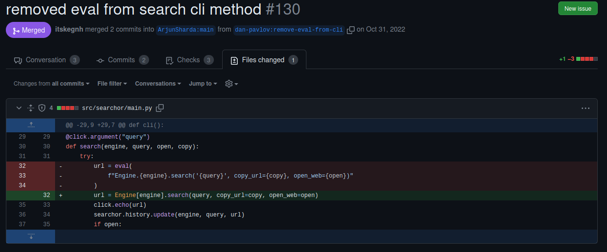 The site has a meta search functionality that can generate a link or redirect you to the site. I am guessing this can be abused with some sort of command substitution. The bottom of the page indicates it is written in Flask and utilizes the Searcher 2.4.0 library. Well, it turns our Searchor 2.4.0 is vulnerable to command injection.