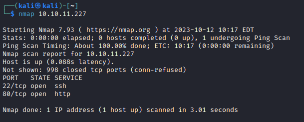 Just 80 and 22 open today. We will start by enumerating the web app.