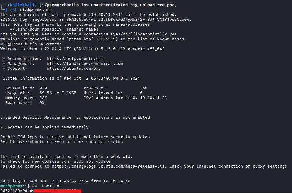 Looking back to the Chamilo DB credentials and the mtz user, I decided to pair those up and try to access the system that way. Success!