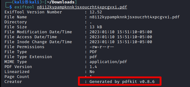 Oddly, the PDF would only be rendered when I capitalized the HTTP portion of the URL. Anyways, using exiftool on the resultant file indicates that it was generated by pdfkit.