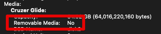 The drive was not being read by my system as removable while all the other drives I was trying had this field listed as yes.