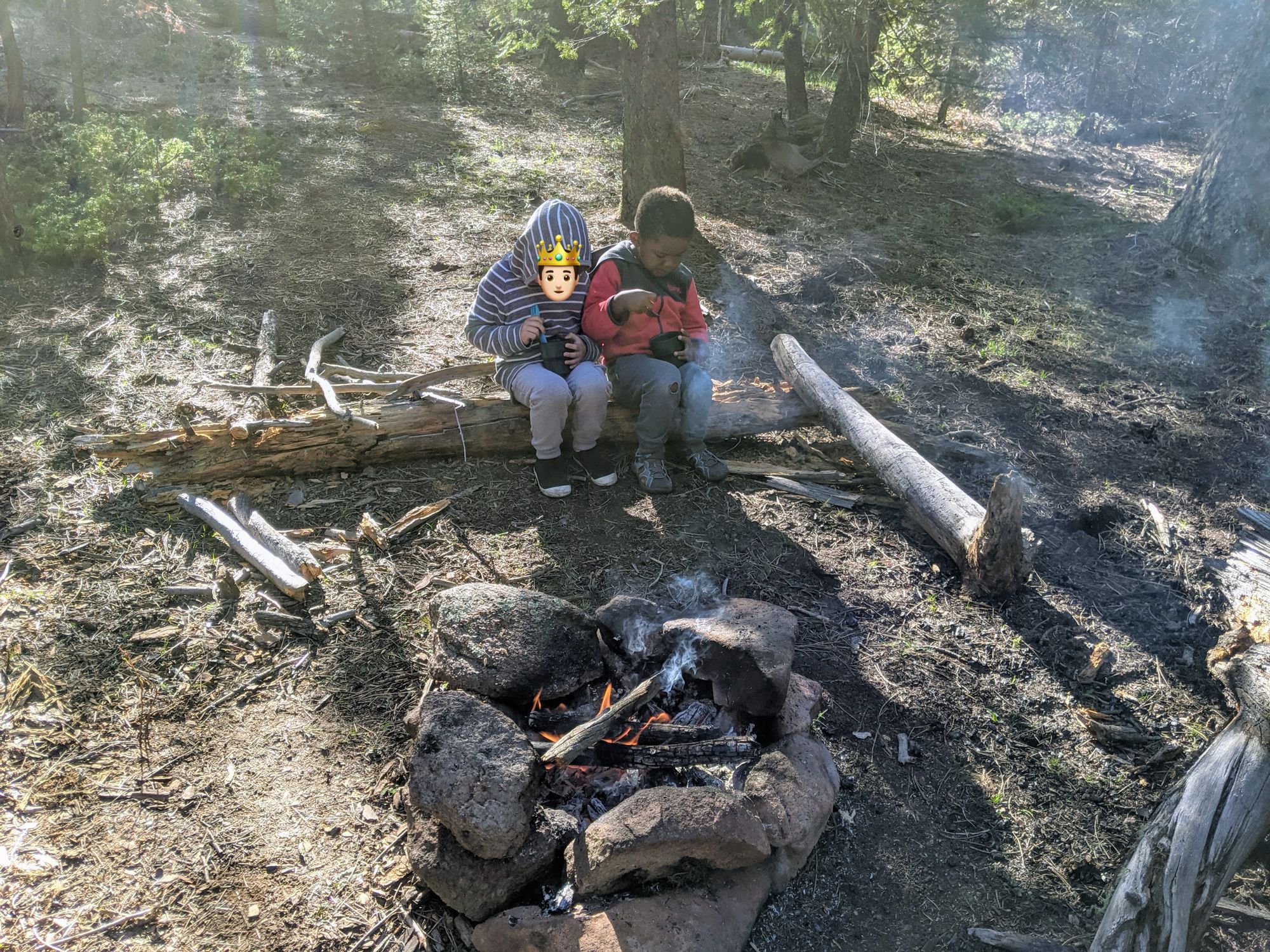 We made it to camp a bit before 10. The kids were still awake and were staying warm near the fire. After a bit of relaxing to calm down from the harrowing night hike we finally all turned in. This was my first time sleeping in a hammock (to give Wifey and the kids enough room in my 2-person tent) and I learned a bit. Even though I had an adequately rated sleeping bag, my backside still ended up super cold. Apparently, you should still use a sleeping pad when sleeping in a hammock to keep your downward-facing parts warm.