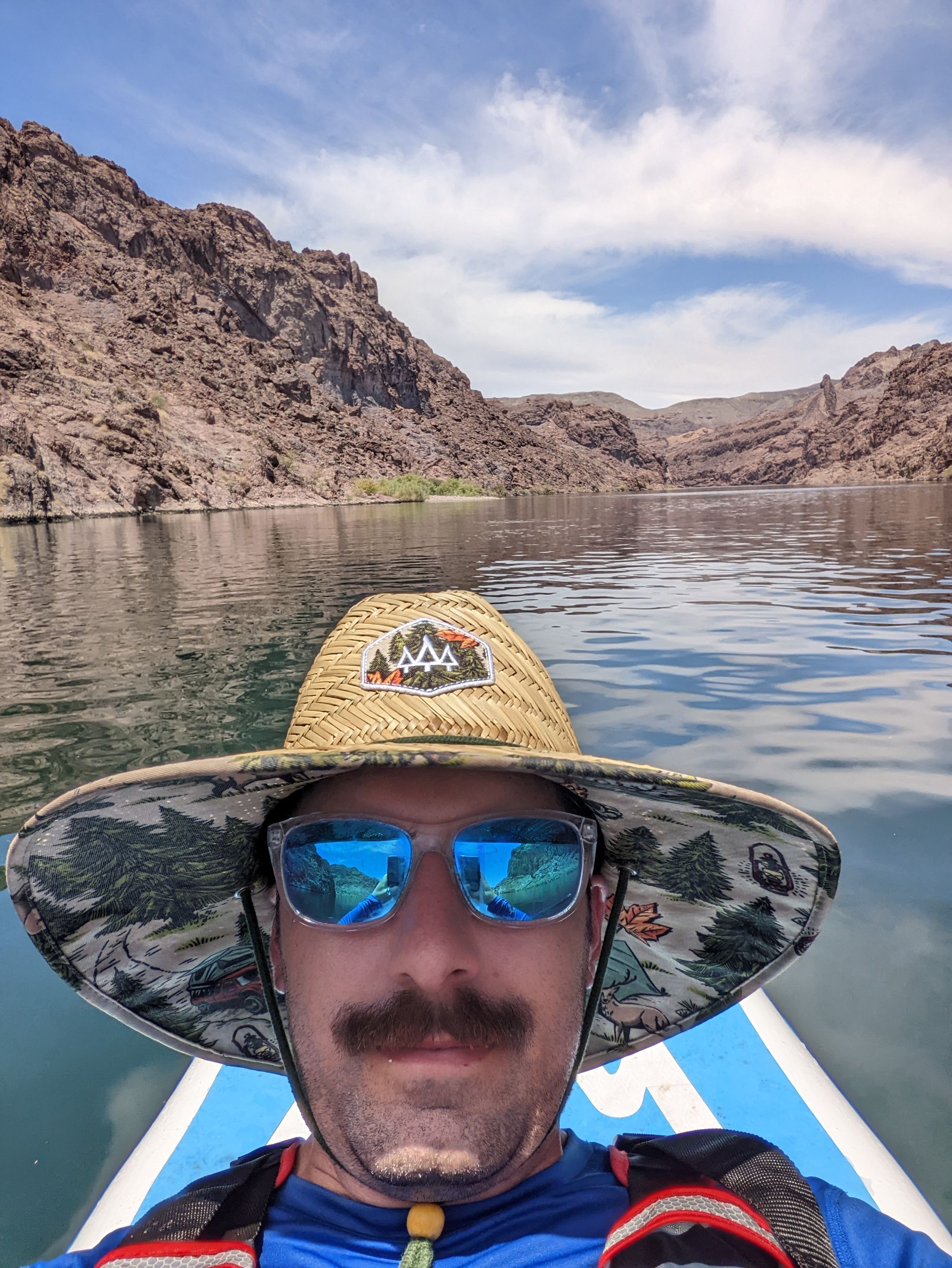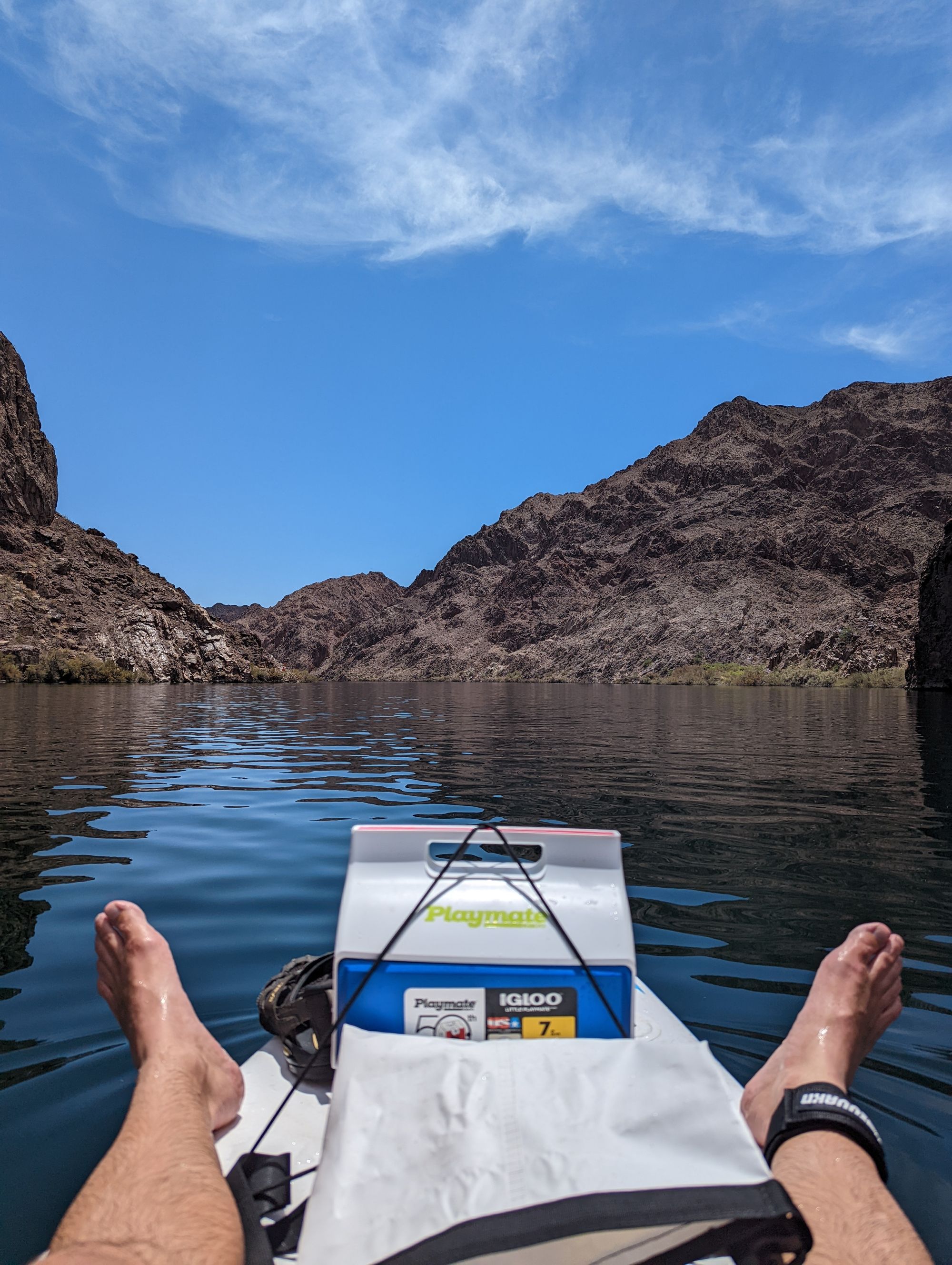 After having rented paddle boards for years, I finally bought an inflatable one and brought it with me on my annual work trip to Las Vegas. After researching the area, I decided to attempt to paddle up the Colorado River below Hoover Dam and see how far I could make it.