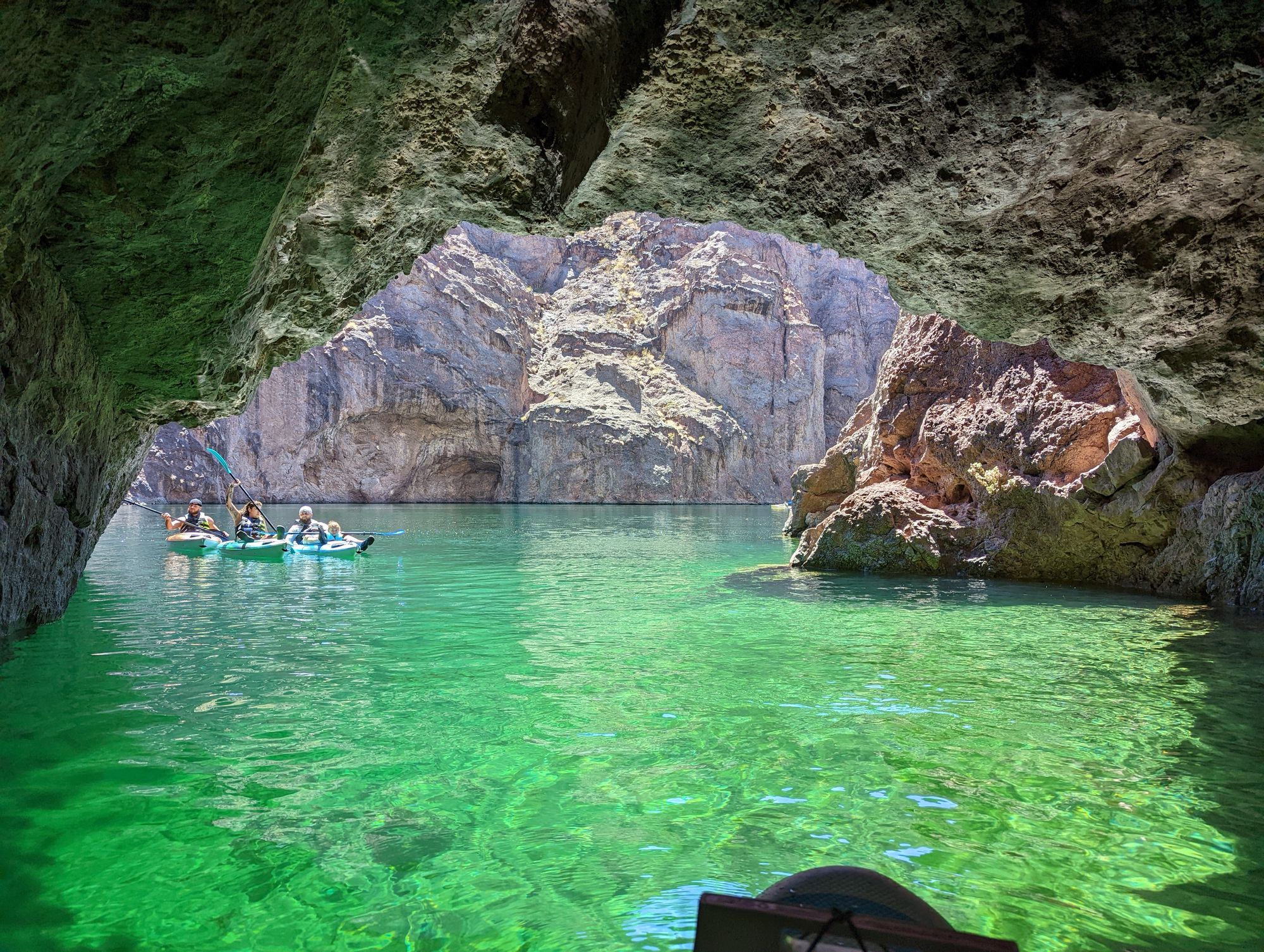 On the way back, the river was much more crowded now that tour groups and people who just wanted to do shorter paddles near Willow Beach had made their way out. Since I had skipped Emerald Cove in the morning, I stopped this time but had to wait in a 20-minute line before I got to go in.