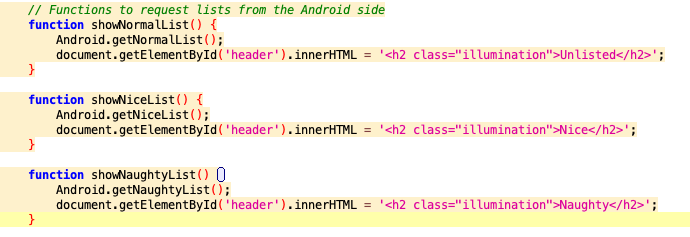 First, I loaded the APK into JADX for analysis. In assets/index.html we can see some functions to get the list items. So, we can probably use these as clues to search through the code.