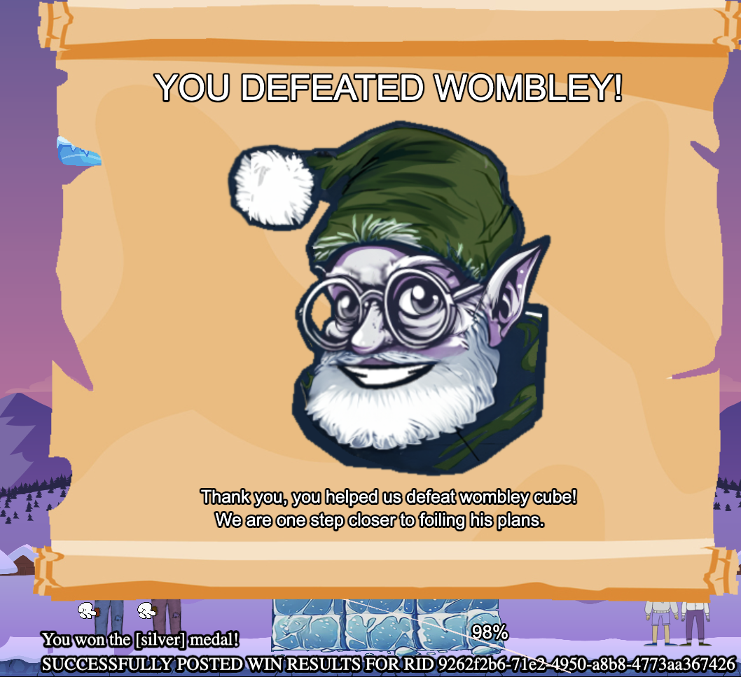 What I find interesting here is the specific wording at the bottom, as if perhaps we could force a win result. After this win, Dusty Giftwrap also hints that we might be able to dive into the game's code for a secret weapon.