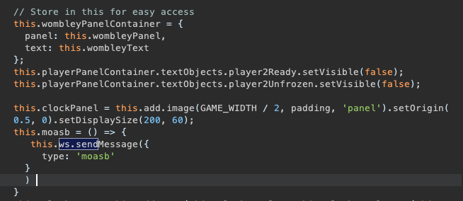Now I just need to figure out how to invoke this. Turns out it is as simple as it looks, you simply send a WebSocket message with {'type': 'moasb'} and shortly an Atomic Bomb of a snowball is dropped on Wombley.