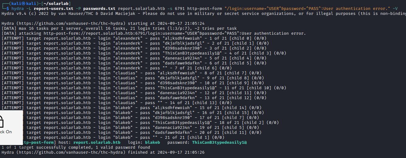 The page redirects to report.solarlab.htb. Perhaps we can try some credentials.