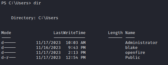 Looking in the Users folder, we see an openfire user, which appears to be associated with a XMPP chat platform.