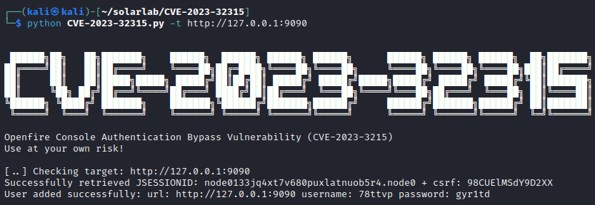 New user successfully created 78ttvp:gyr1td which yeilds a successful login!