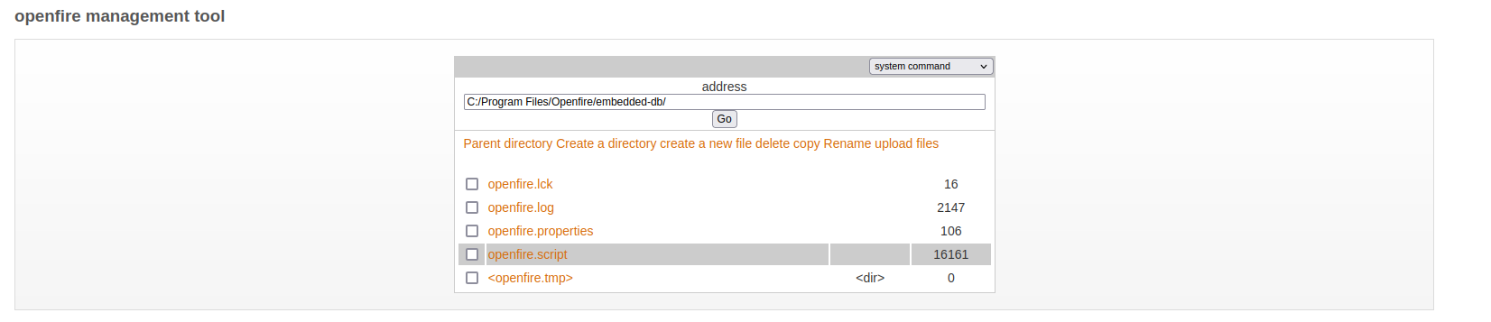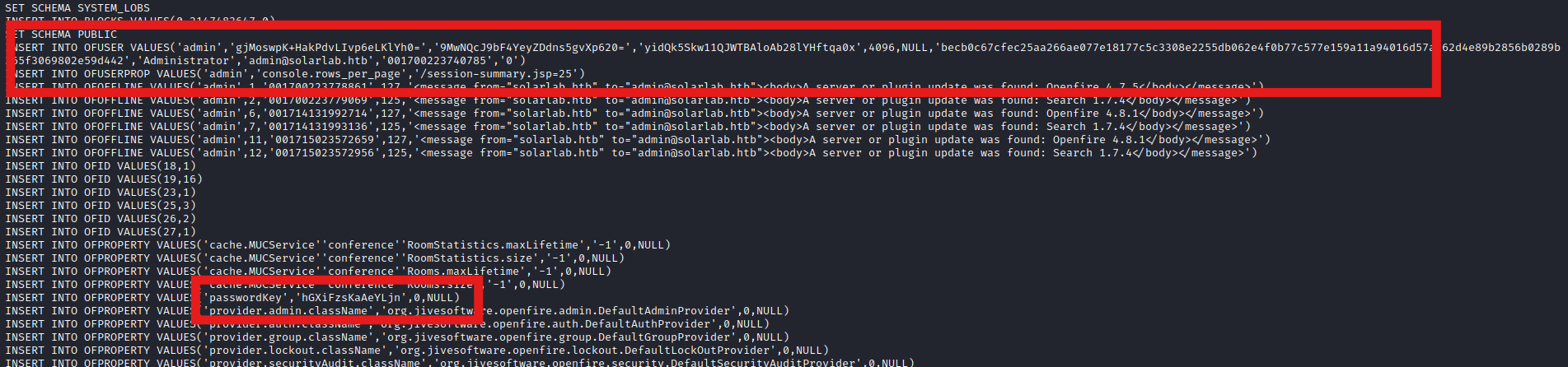 Reverse shelling again and looking into these files reveals some interesting information. Specifically the openfire.script file.
