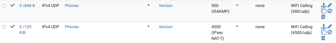 UDP ports 500 & 4500 open to sg.vzwfemto.com and wo.vzwwo.com. The first FQDN comes from https://www.verizonwireless.com/support/knowledge-base-25525/. The second one I had to figure out after my WiFi calling stopped working. A quick packet capture identified the domain name.