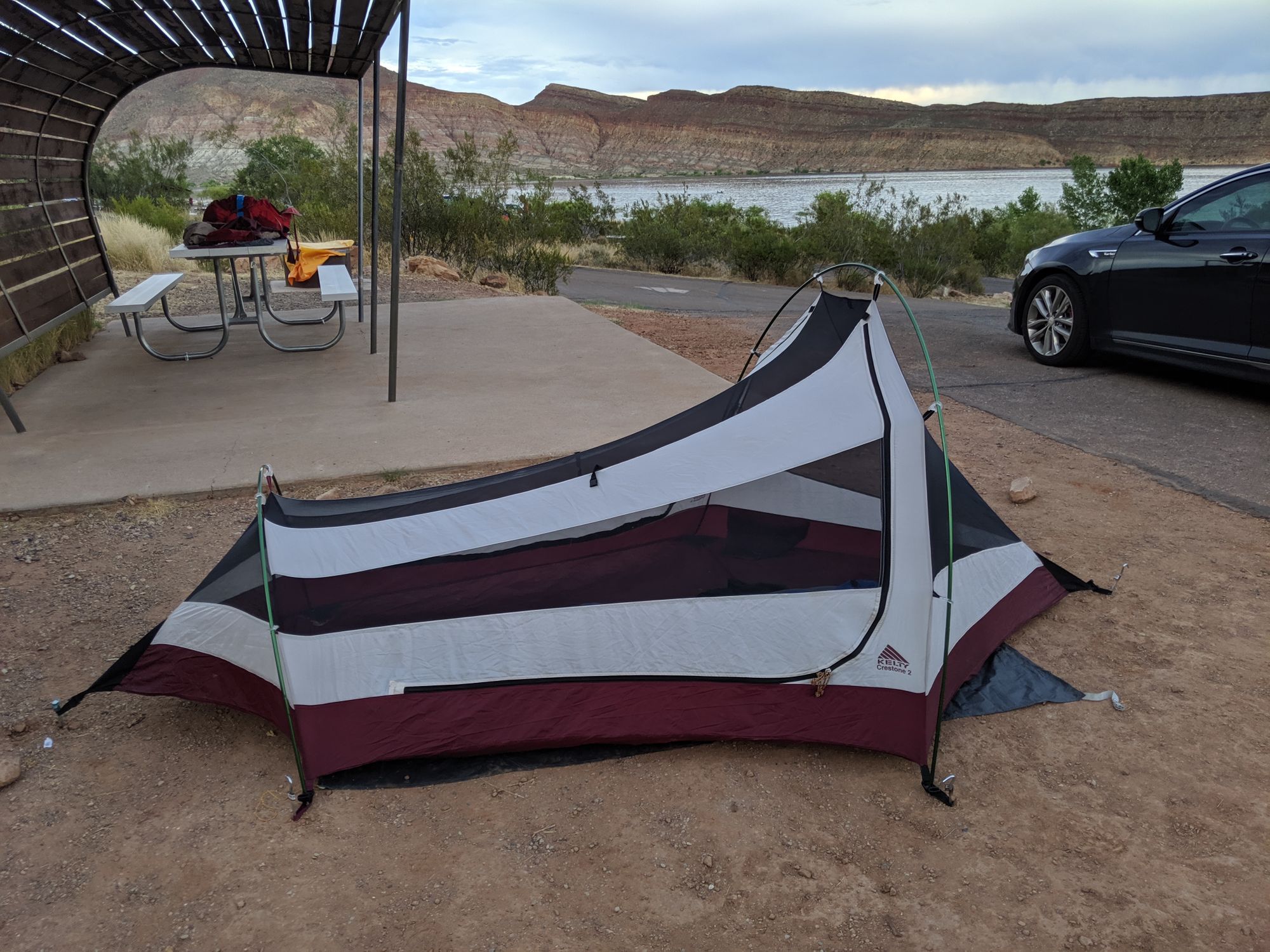 Friday Night: Camp at Quail Creek State Park. This put me 30-45 minutes from the park entrances where I needed to go to get my wilderness permit first thing in the morning. All campsites within Zion were already booked. In retrospect, there was probably some free BLM land in the area that I could have used as well.