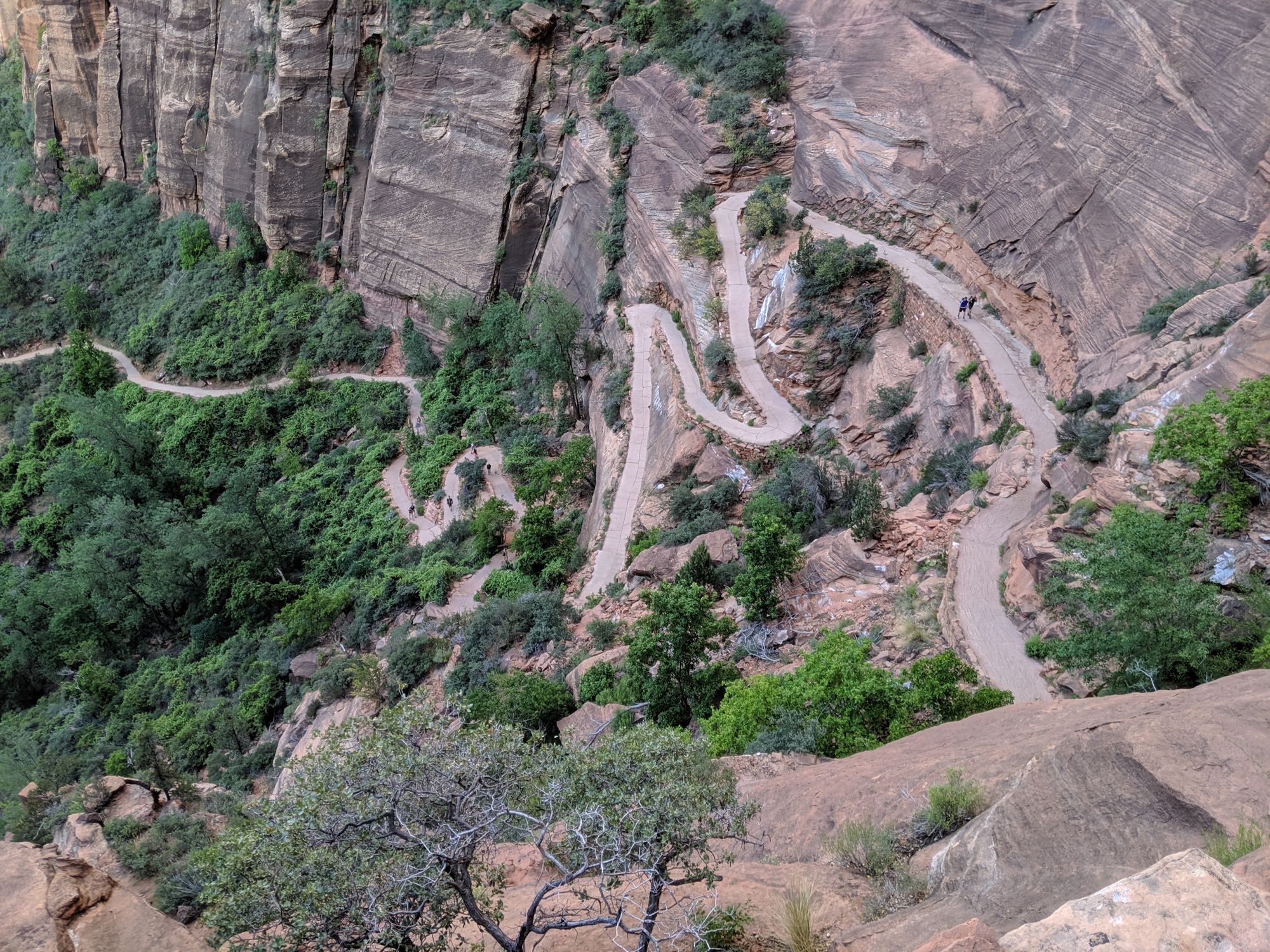 From Angel's Landing, the trail to the bottom of the main canyon was basically switchbacks the entire way as I finished that 3,400 foot descent.