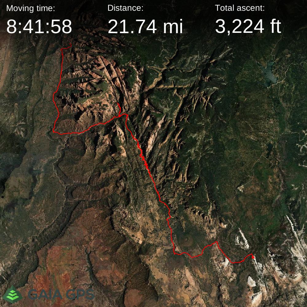 No much to say about this trail other than it was just a sheer fight against the heat and my bum knee. It was along this trail that I started think I was going to have to bail the next morning. I also emptied my Camelback here, which left me with only 2 liters of water for the rest of the evening; a little deeper into my water reserves than I really wanted to be. The heat of Hop Valley had forced me through quite a bit of water.